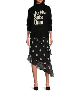 I sort of like this outfit. The french saying on the sweater means something that cannot be defined.